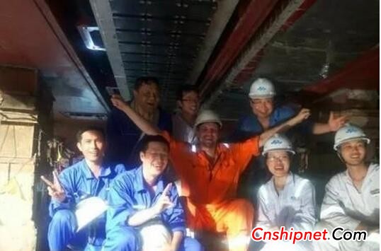 事实也是如此。如在船用多普勒流速剖面仪(ADCP)系统安装内径上,船东要求透声板底与换能器底面内径安装距离误差值不能超过1.2厘米。为解决这一问题,电装、机装等多个单位群策群力,连夜加工尼龙垫片和护套,尝试了3次,才最终达到要求。