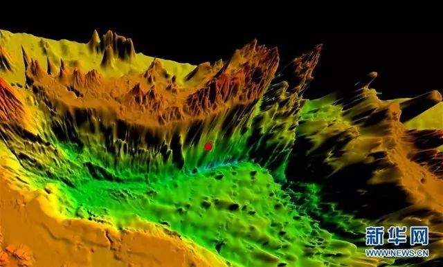 图为“彩虹鱼”项目团队科研人员陈宗春绘制的新不列颠海沟地形图,红点处为“张謇”号作业位置。
