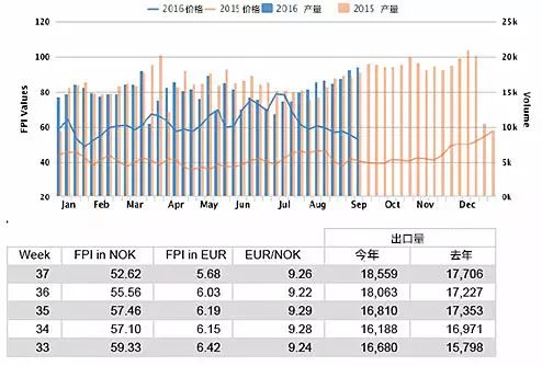 而2016年8月中挪威市场上的三文鱼报价如下: