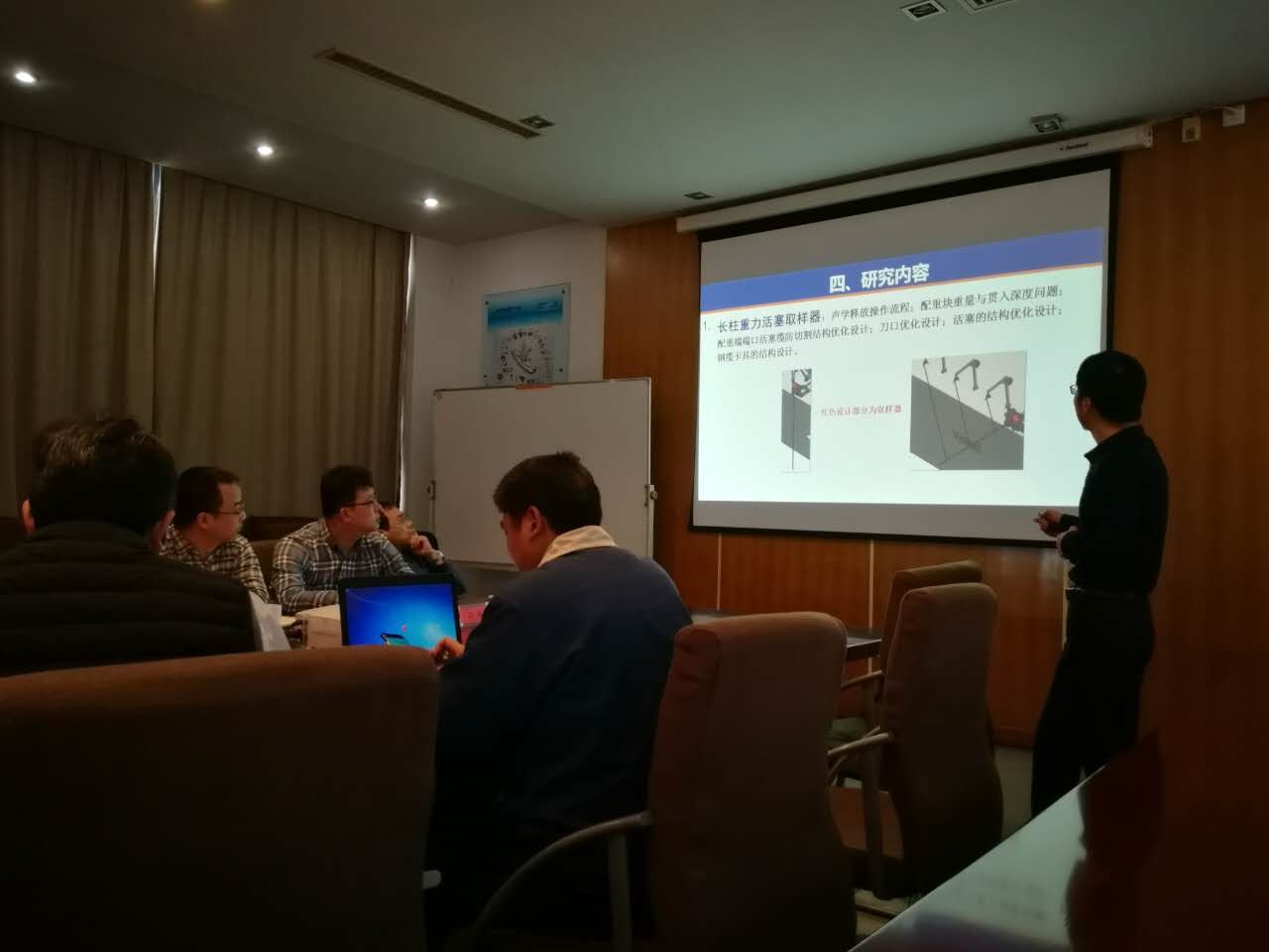 本次会议由副总经理陈勇主持,来自中国海洋大学的李磊博士和北京化工大学的秦柳博士分别作了《深海敷缆成套装备关键技术研发》和《长柱取样系统成套装备关键技术研发》的研究课题报告。秦柳博士主要针对长柱状取样系统研制,开展重力活塞取样器和牵引式地质绞车系统的研究;李磊博士主要针对深海敷缆成套装备关键技术,开展自动化锚泊移船定位装置和复杂情况下大型自适应A型收放装置的研究。评审组长万荣教授和责任导师杜建科教授对项目研究报告扎实的研究基础和可行性,给予了高度评价和充分肯定,同时也提出了宝贵的修改意见,对下一步的研究重点、难点、目标都给出了很好的建议,对项目的完成具有重要的指导意义。宁波市、北仑区人社局有关领导充分肯定了两位博士的研究课题,认为课题研究目标清晰,研究内容新颖,技术内容设计合理全面,技术路线可行,预期研究成果具有先进性,同意开题,并对我司博士后工作站提出了相关要求和期望。