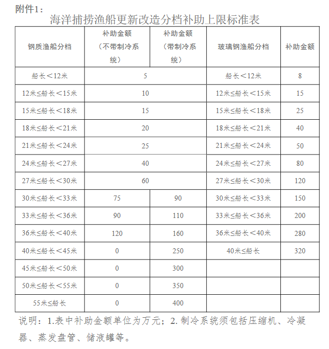 附件:1.海洋捕捞渔船更新改造分档补助上限标准