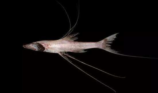 三角架鱼是深海鱼的代表,它们用长长的鱼鳍像踩高跷似的在海底行走,属于灯眼蜥鱼科,它们的视力不好,这是家族的特征。觅食的时候,它们会逆流而立,将长长的胸鳍向前延伸,以“感觉”前面漂流的猎物。