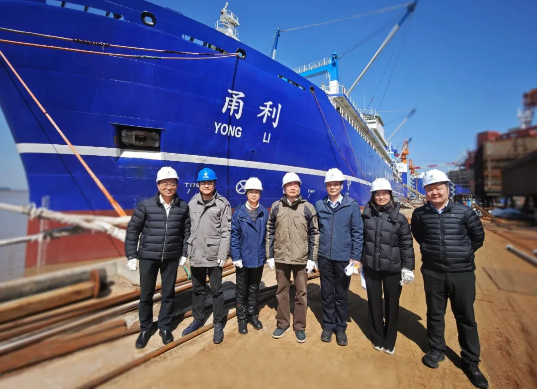调研期间,吴晓光主任登上“甬利”号,深入察看了船舶装备配置、作业流程及加工系统。总设计师祝海勇表示,“甬利”号由武船院负责总体设计及关键技术研发,欧亚远洋投资,对标世界先进水平,配备国际先进连续泵吸捕捞系统和智能化生产流水线,核心捕捞装备与探鱼设备由捷胜海洋提供,可实现不间断作业,是集捕捞与加工于一体的极地海上工厂。