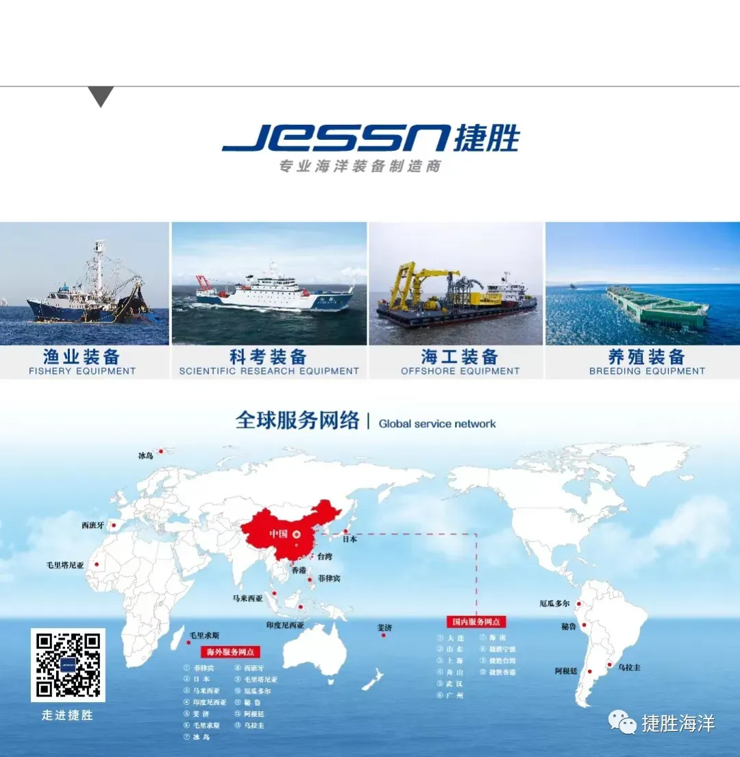 随后,吴晓光主任一行前往捷胜海洋,深入现场实地考察了远洋渔业装备的研发与生产流程,认真听取了企业发展历程、产业布局、科技创新成果及未来战略规划的详细介绍。贺波董事长表示,捷胜海洋始终聚焦海洋渔业装备国产化方向,已形成国际领先的研发与制造能力;同时积极布局智能化深远海养殖系统解决方案,为推动远洋渔业与养殖产业现代化升级提供有力支撑。